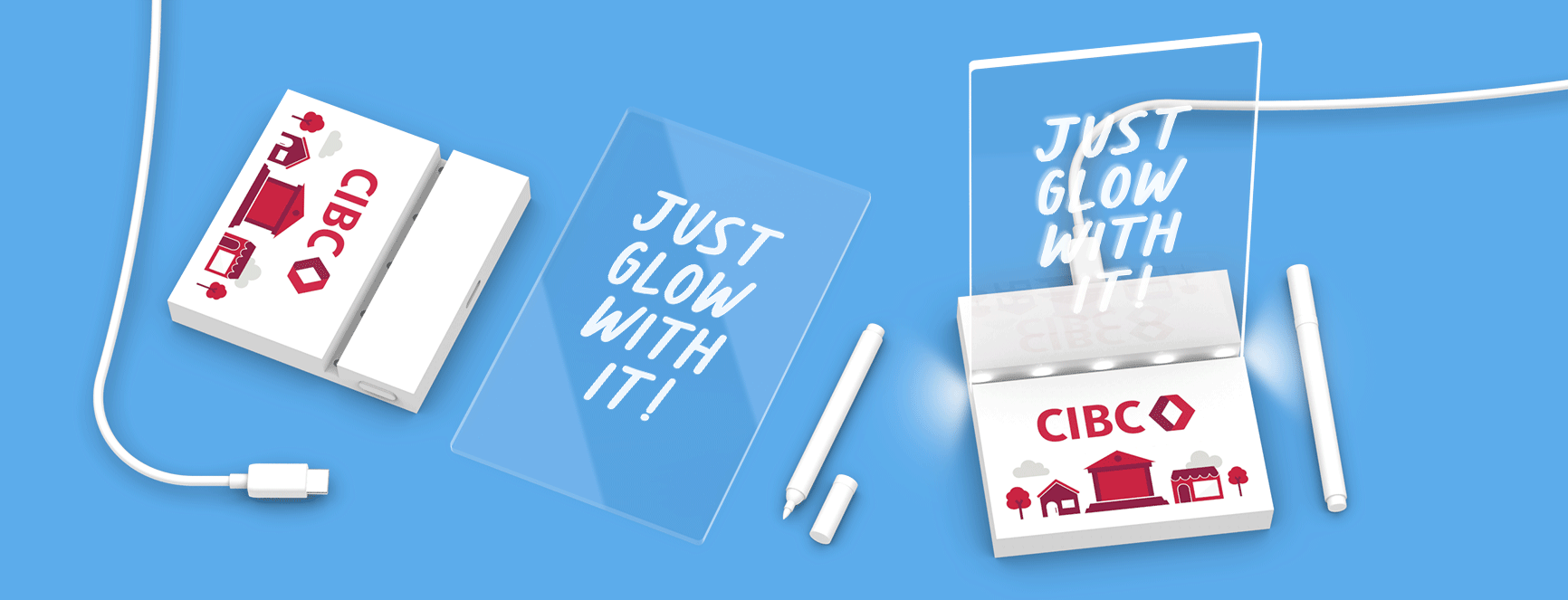The ClearPad Glow is an innovative light up memo pad that inspires creativity. Use the supplied chalk marker to make quick notes, doodle or display an inspirational quote on the acrylic pad. 5 LED cool/white lights can be turned on to illuminate the memo pad. Pad can be wiped clean and endlessly reused. Can be used while plugged in or take advantage of the 2hr battery life when a plug is not accessible. Makes for a sleek desktop item. Minimum order 1 unit. Packaged in a gift box.