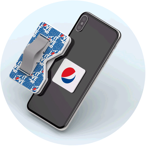 Adheres to back of any phone or phone case for a universal fit