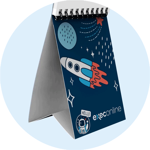 Includes full color customizable tent stand (front & back. Your logo is always visible, all year long. Includes full color, customizable cover. Add lux finishes like metallic gold and silver foil to the cover to highlight key design elements (optional)
