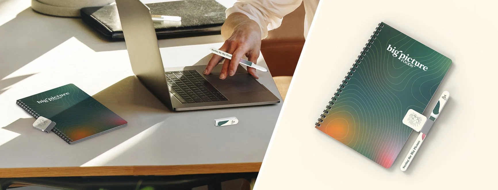 Includes 4CP imprint on notebook cover, 1 location pen holder and 2 locations pen