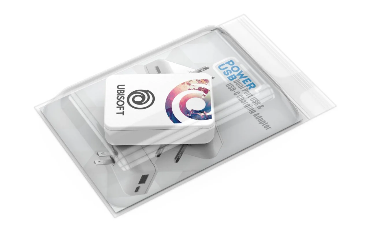 The PowerUSB is a portable wall plug that includes 2 charging ports: 1 x USB A and 1 x USB C for faster higher voltage charging. Wall prongs fold down for easy packing.